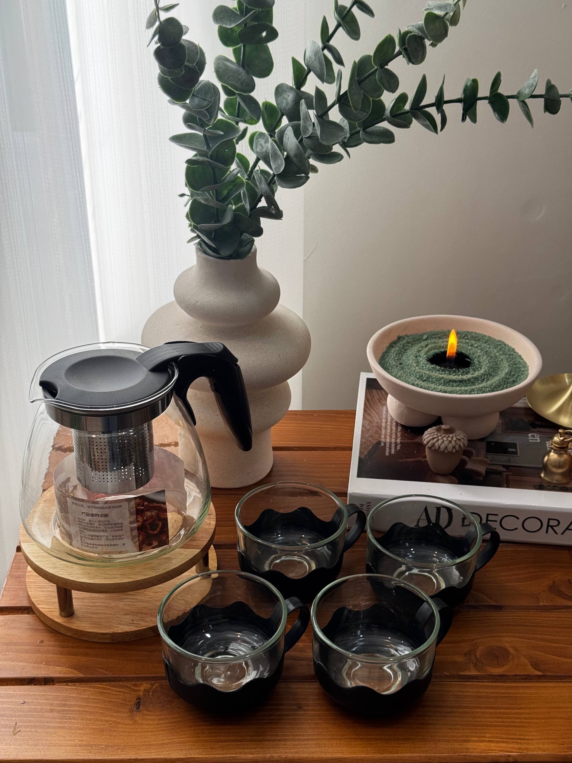 ست قوری و فنجان دسته پیرکس مشکی